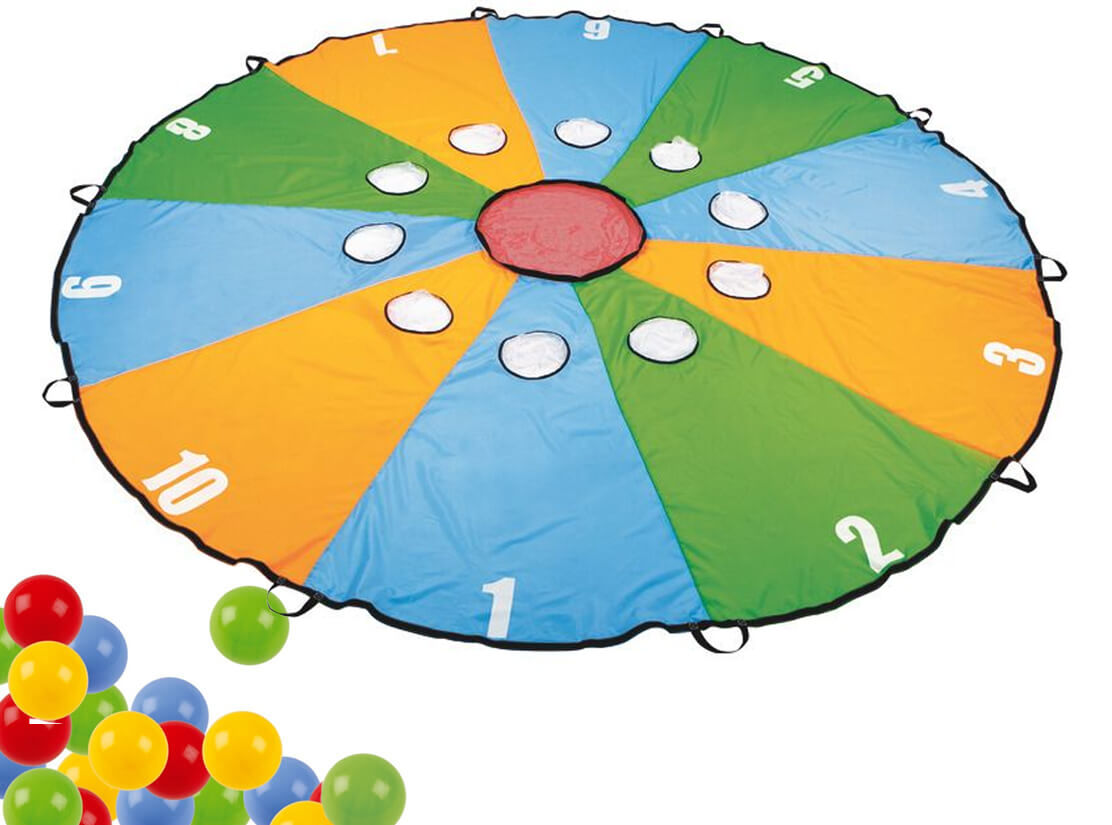 Schwungtuch mit 25 bunten Bällen