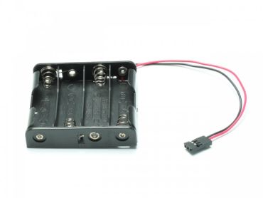 Batteriehalterung bzw. Akkubox passend für 4 handelsübliche AA Mignon Zellen. Mit JR Stecker direkt passend in R/C Empfänger von Modell Autos, Schiffen oder Flugzeugen.